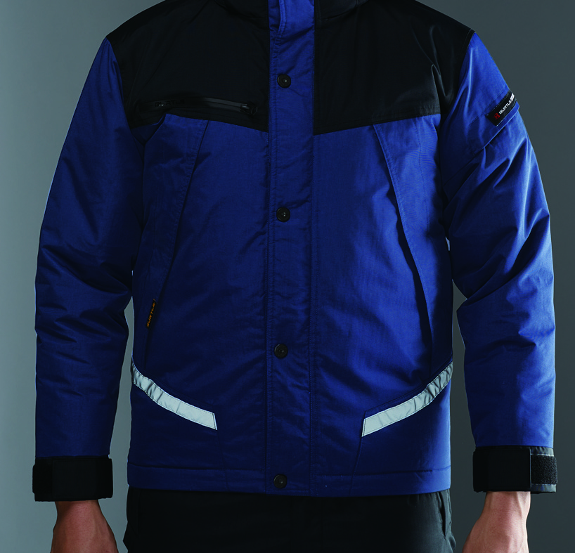 身頃の前後、袖に反射材を装着する事で、夜間の視認性を強調し、
